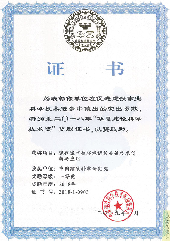 華夏建設(shè)科學(xué)技術(shù)獎一等獎