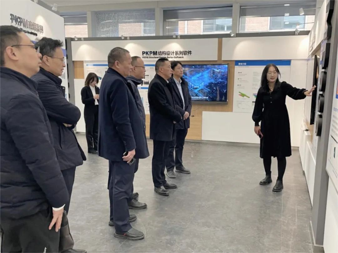 會前,梁超一行參觀了中國建研院展廳、中建研科技數(shù)字科技展廳,了解了中國建研院的歷史與發(fā)展,以及中建研科技在國產(chǎn)自主軟件開發(fā)、關鍵核心技術攻關及最新BIM應用方面的研究成果。