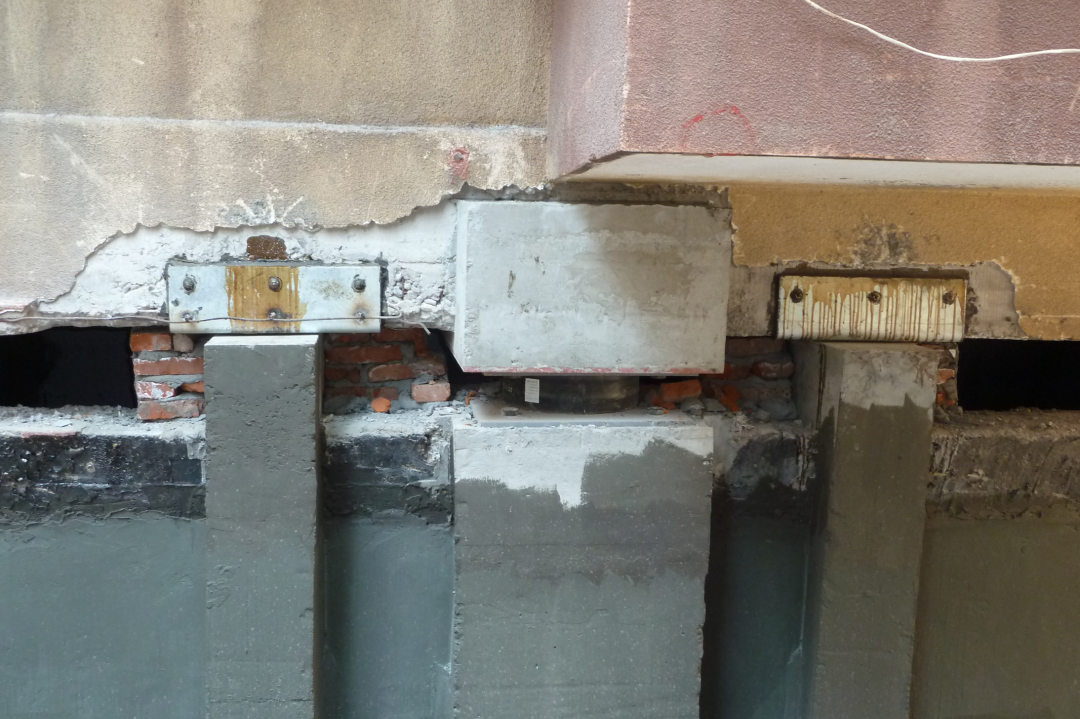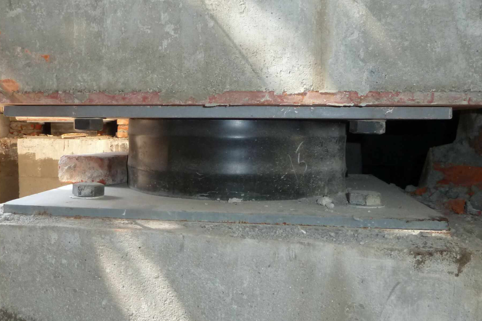 后備支座設(shè)置:隔震支座在罕遇地震作用下已經(jīng)損壞失去承載力的情況下,作為后備的臨時支座支承上部結(jié)構(gòu)的豎向荷載,確保結(jié)構(gòu)不至于立即倒塌。達到結(jié)構(gòu)“大震不倒”,最大限度的保證人員生命和財產(chǎn)安全。