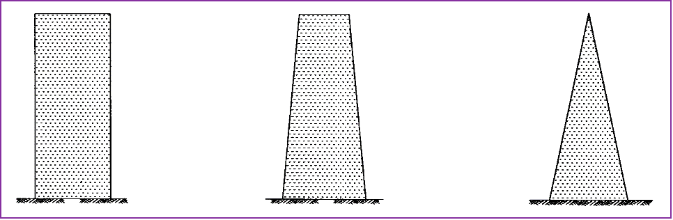 一般來說,地震區建筑的豎向體型變化要均勻,宜優先采用矩形、梯形、三角形等均勻變化的幾何形狀(圖1),盡量避免過大的外挑和內收。