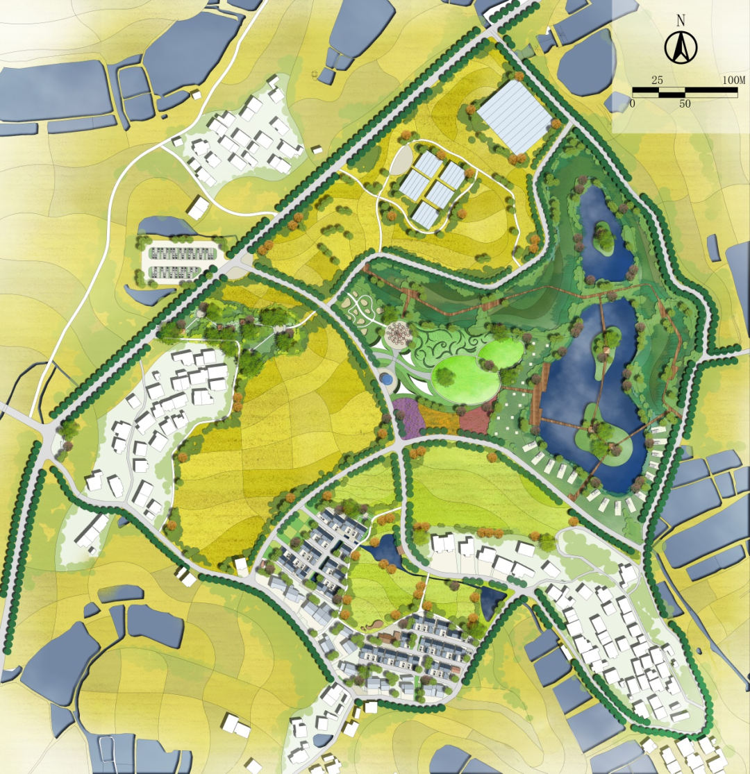 統籌推進新村建設和舊村更新,理清產業發展重點,梳理水系和道路,強化“湖·田·林·塘·居”的空間形態,形成“一心、三環、多區”的空間結構。同時結合村莊特色的水產養殖、果樹、水稻種植等產業,配套研學功能,打造以“漁樵耕讀”為主題的露營基地,推動農文旅融合發展。積極構建功能復合、產業升級的和美鄉村。