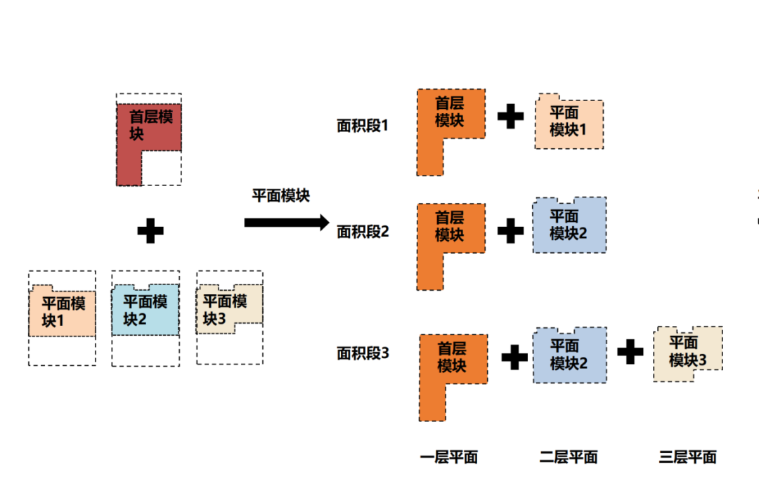 平面布局充分考慮裝配式建筑特點,在同一宅基地尺寸框架下,采用首層布局一致,二層、三層功能房間模塊增減的方式,形成不同的空間布局,滿足了不同家庭的多樣化需求,并實現造價低,工期短的建造目標。