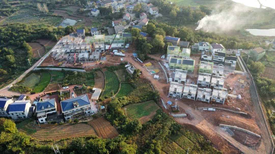 綜合考慮安全耐久,施工便捷、建造成本、群眾接受程度等多種因素,并經過專家論證后,確定大冶市新型農房建設采用裝配式鋼框架結構體系。經測算,該結構體系從基礎施工到精裝交付,總工期在3到4個月,比傳統建筑施工周期縮短,同時在節能環保、隔熱降噪等方面優勢明顯,具備普遍推廣的基礎。