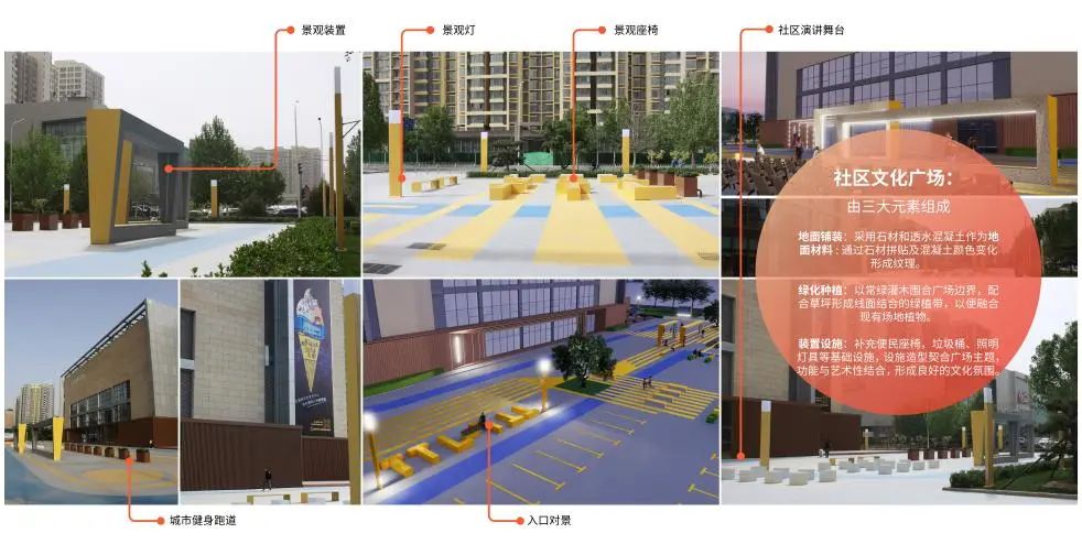 重新規劃廣場,結合場地現狀,通過鋪裝設計、綠化提升、設施補齊,面向周邊居民提供室外休閑活動場地。以最少的代價完成空間再造。