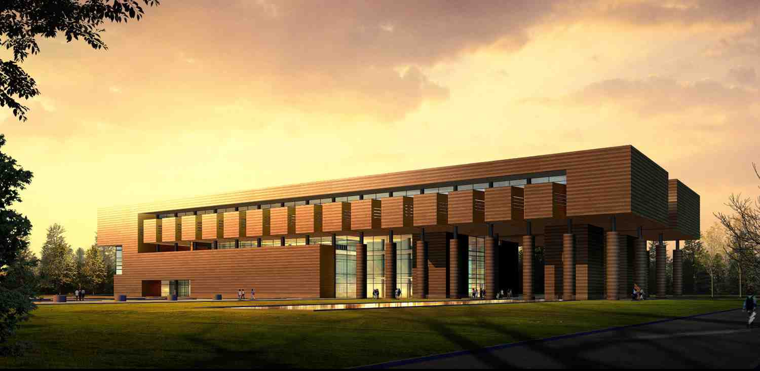 總平面布局設(shè)計(jì)結(jié)合校園總體規(guī)劃及周邊環(huán)境,充分考慮地段的合理化、最大化應(yīng)用,將建筑平面布置為東西向長(zhǎng)、南北向短的矩形。建筑東部結(jié)合入口布置高度為14.3米的大型室外柱廊,與南側(cè)美術(shù)學(xué)院廣場(chǎng)及東側(cè)城市綠化帶形成空間的延續(xù)及景觀上的滲透,并將室外空間有效的引入了室內(nèi)接待門(mén)廳。參觀人流可以從南、北、東三個(gè)方向方便的進(jìn)入博物館。建筑設(shè)計(jì)具有典型的“提契諾學(xué)派”建筑設(shè)計(jì)風(fēng)格:采用“減法”的設(shè)計(jì)思路,從整體巨石中雕刻出體量簡(jiǎn)潔、虛實(shí)對(duì)比強(qiáng)烈的建筑形體。注重自然光線在建筑室內(nèi)、室外的運(yùn)用,體現(xiàn)了建筑簡(jiǎn)潔、明確、有力而內(nèi)向的建筑風(fēng)格。