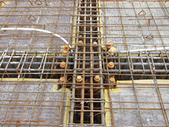 鋼筋與混凝土之間的粘結(jié)與錨固性能是混凝土結(jié)構(gòu)研究的基本問題之一,它對結(jié)構(gòu)中鋼筋強度的發(fā)揮、裂縫控制、配筋構(gòu)造以及結(jié)構(gòu)的安全性均有重要影響。目前,在鋼筋混凝土結(jié)構(gòu)中,工程中鋼筋常用的機械錨固方式是使用末端帶彎鉤的構(gòu)造,90°或135°彎鉤鋼筋雖然在一定程度上增強了鋼筋錨固性能、減小了錨固長度,但是彎折或較大的彎弧半徑構(gòu)造要求經(jīng)常帶來許多問題,如造成梁-柱節(jié)點區(qū)鋼筋擁擠、彎折或彎鉤與其他鋼筋的布置互相干擾、構(gòu)件尺寸不能滿足錨固長度要求等等。在使用大直徑鋼筋時,這些矛盾更加突出。由我公司開發(fā)的CABR鋼筋機械錨固技術(shù),很好地解決了這一難題,在保證鋼筋機械錨固性能的基礎上,優(yōu)化鋼筋錨固條件,減少鋼筋錨固長度,節(jié)約錨固用鋼材,方便施工,提高混凝土澆筑質(zhì)量。