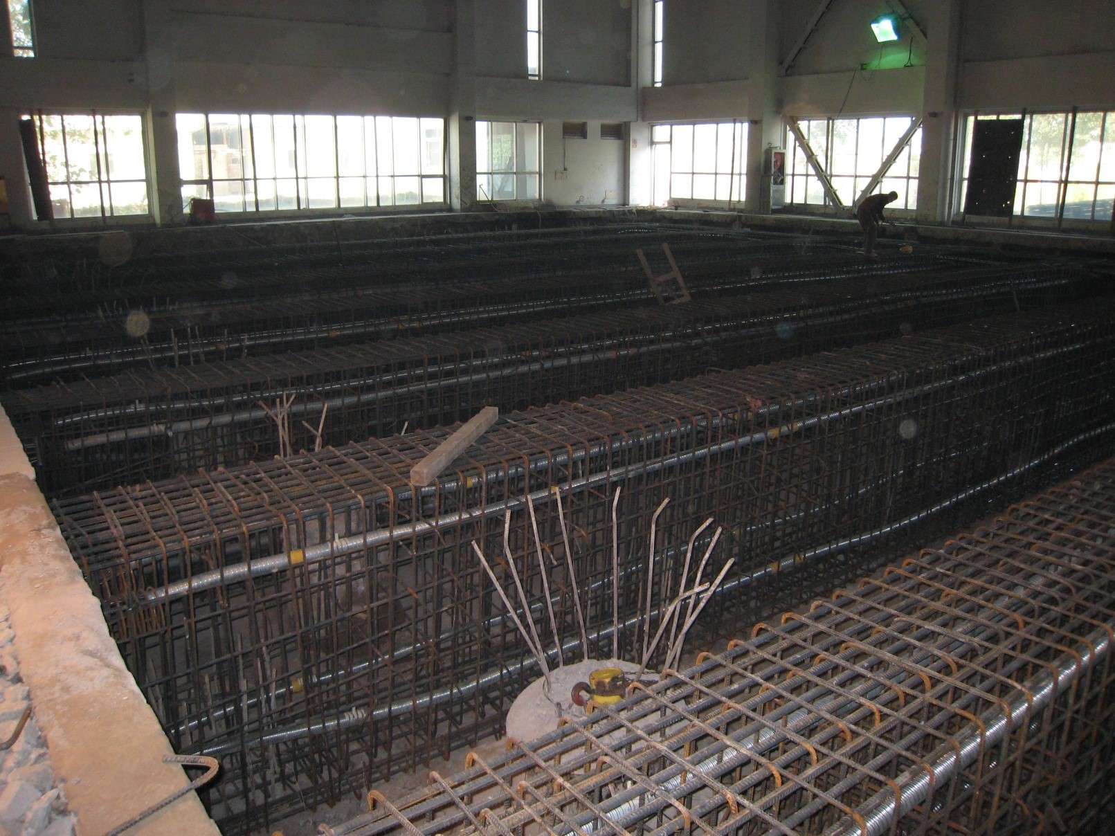 預(yù)應(yīng)力設(shè)計(jì)及施工。反力墻結(jié)構(gòu)由L形反力墻和矩形強(qiáng)力地板組成,墻高?13.4m,厚1.6-2.2m;強(qiáng)力地板長(zhǎng)26.75m,寬20.15m,板厚?1000mm。